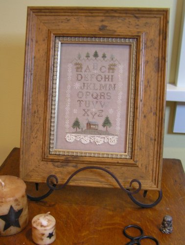The model was stitched on 40 count Wood Smoke from Lakeside Linens.