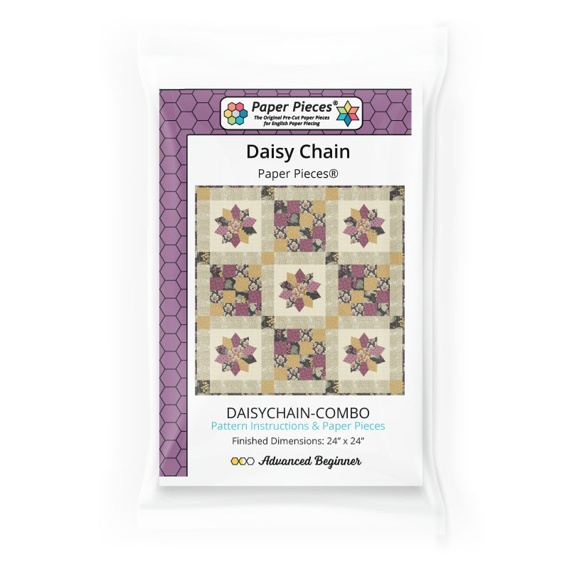 Crazy for daisies? This sweet pattern combines three methods of quilting: EPP, appliquŽ, and machine piecing! Daisy Chain uses classic Chrysanthemums and itÕs a quick finish- perfect for a new baby gift or a wall hanging. Plus, itÕs a great choice to use up your scrap stash!