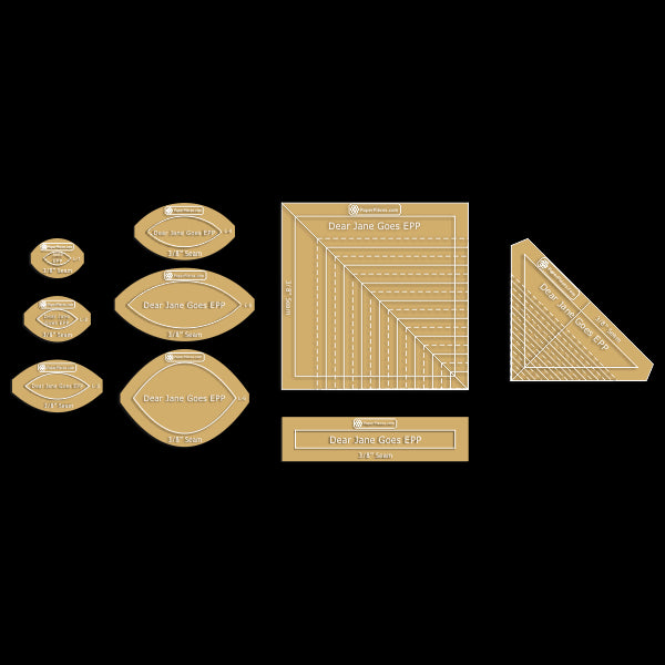 Pieces for all blocks in each row, borders, and corner. The book Dear Jane by Brenda Papadakis is required to for instruction.