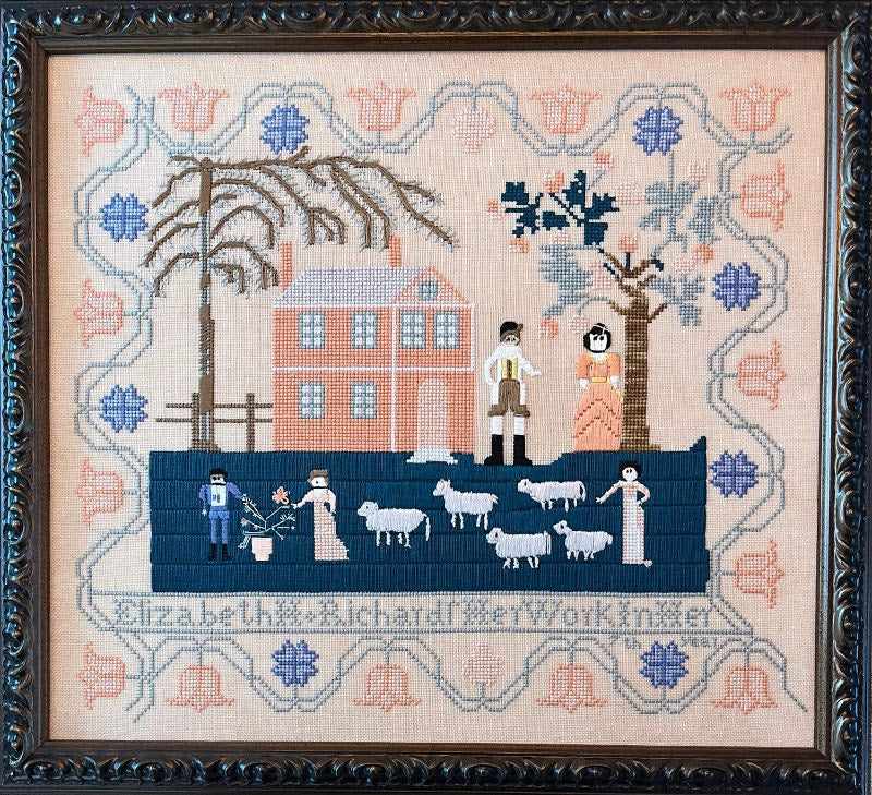 This beautiful and colorful adaptation is of a sampler in the Delaware Historical Society collection.  Enjoy stitching this sampler either in the