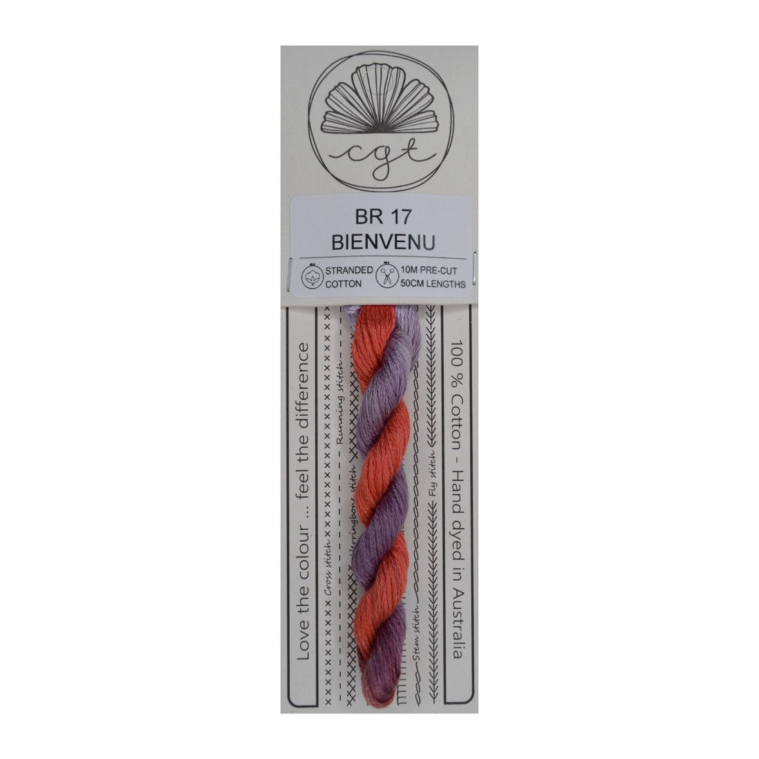 10.9 yards of Cottage Garden Threads pre-cut 6 strand, hand-dyed 100% cotton thread. Floss is colorfast, lightfast and packaged on recycled card stock. Includes storage and floss-care instructions on back of card.