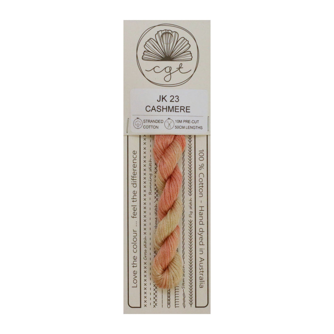 10.9 yards of Cottage Garden Threads pre-cut 6 strand, hand-dyed 100% cotton thread. Floss is colorfast, lightfast and packaged on recycled card stock. Includes storage and floss-care instructions on back of card.
