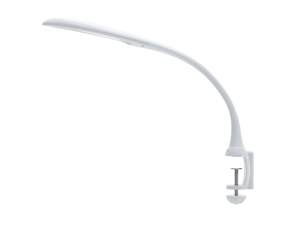 The Stella»EDGE is designed for maximum durability and traveling capabilities. The Edge’s patented design has a clamping mechanism which allows it to attach to any surface between .5″ and 2.5″ thick. The Tri-Spectrum Technology which allows users to easily change their light from a warm spectrum similar to incandescent lights, to a natural white similar to sunlight, to a cool white similar to moonlight. The 5-level dimming allows varying light intensities down to 10% of the maximum output. The segmented steel in the neck allows the perfect combination of stability and flexibility so the head can be easily maneuvered and held in almost any position. The LED technology allows for a brilliant bright light using an average 10 watts of power, producing little to no heat, and lasting well over 50,000 hours with no bulbs to replace. The Stella»EDGE is controlled with a wireless remote that magnetically attaches to the base when not in use.