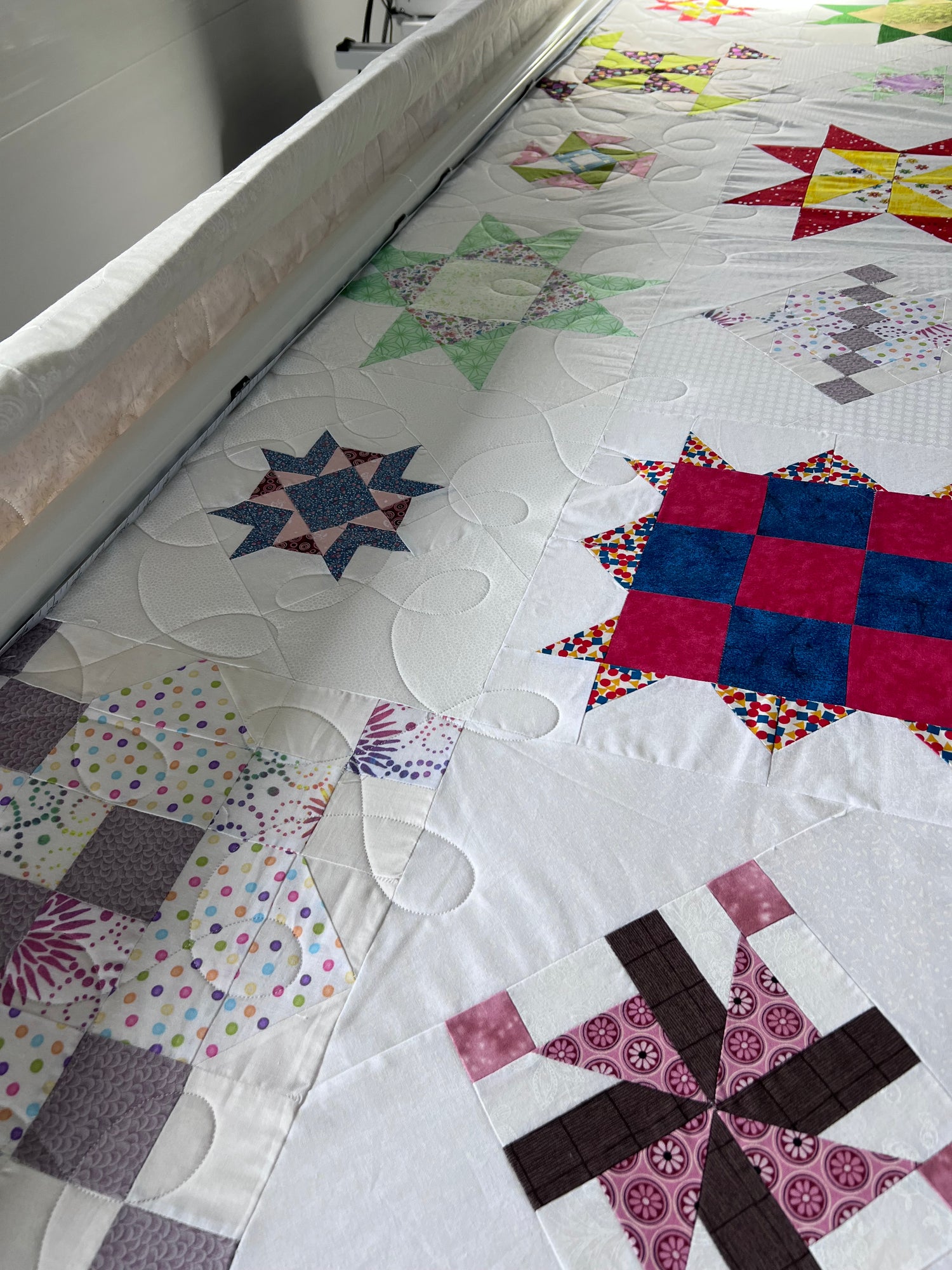 At The Stitching Corner, I specialize in edge-to-edge digital quilting (pantographs)—a beautiful, consistent design that flows across your entire quilt. With an endless variety of digital patterns to choose from, you’re sure to find the perfect look for your project.