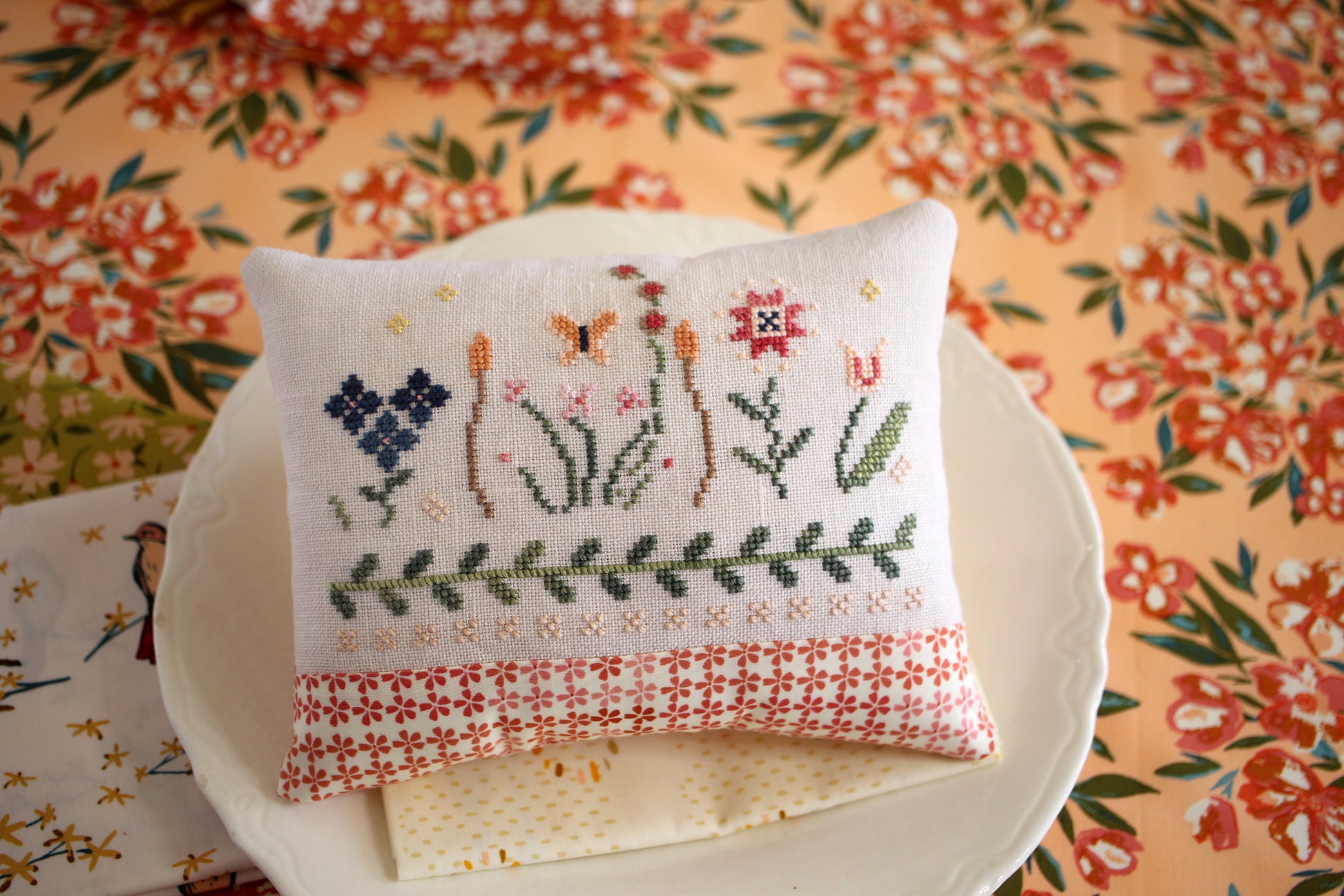 The model is stitched on 32countVintage Porcelain from Lakeside Linens