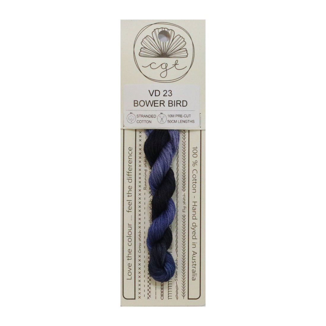 10.9 yards of Cottage Garden Threads pre-cut 6 strand, hand-dyed 100% cotton thread. Floss is colorfast, lightfast and packaged on recycled card stock. Includes storage and floss-care instructions on back of card.