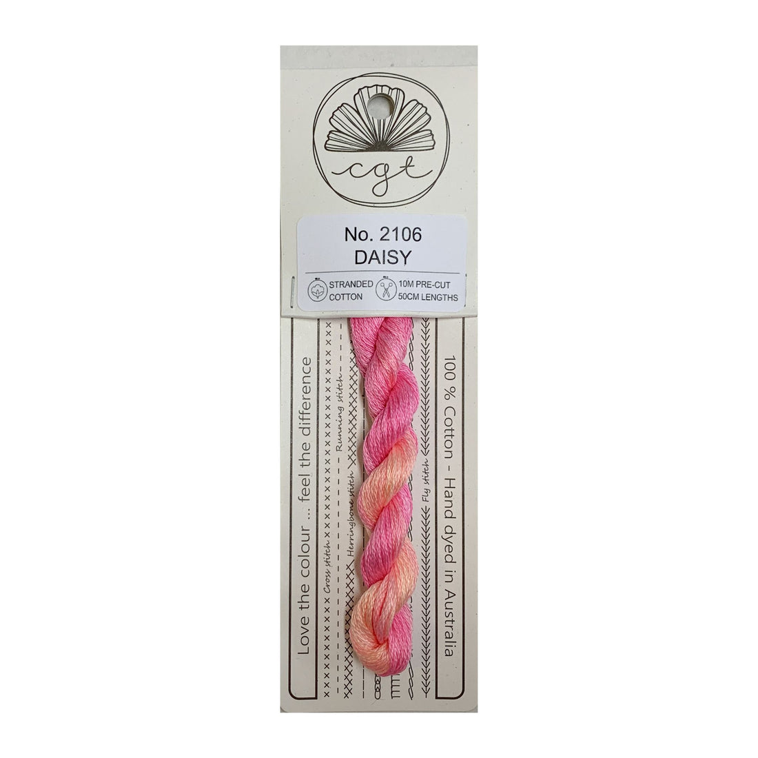 10.9 yards of Cottage Garden Threads pre-cut 6 strand, hand-dyed 100% cotton thread. Floss is colorfast, lightfast and packaged on recycled card stock. Includes storage and floss-care instructions on back of card.