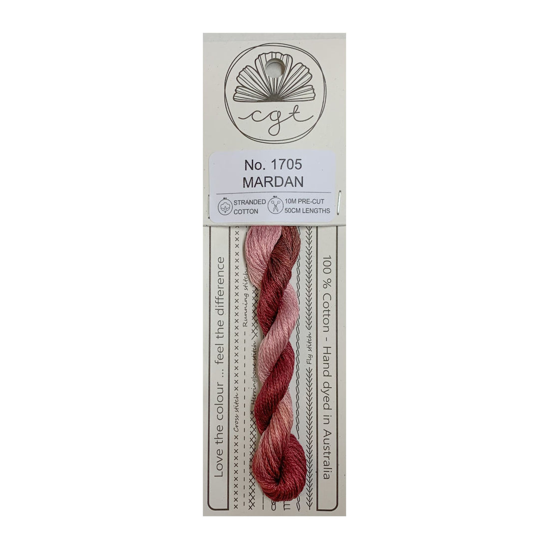 10.9 yards of Cottage Garden Threads pre-cut 6 strand, hand-dyed 100% cotton thread. Floss is colorfast, lightfast and packaged on recycled card stock. Includes storage and floss-care instructions on back of card.