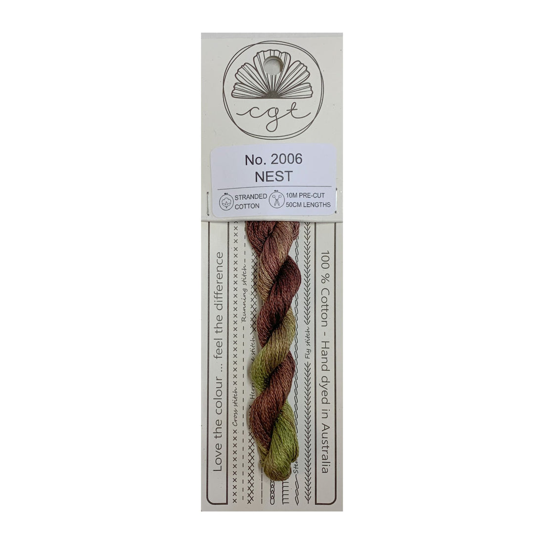 10.9 yards of Cottage Garden Threads pre-cut 6 strand, hand-dyed 100% cotton thread. Floss is colorfast, lightfast and packaged on recycled card stock. Includes storage and floss-care instructions on back of card.