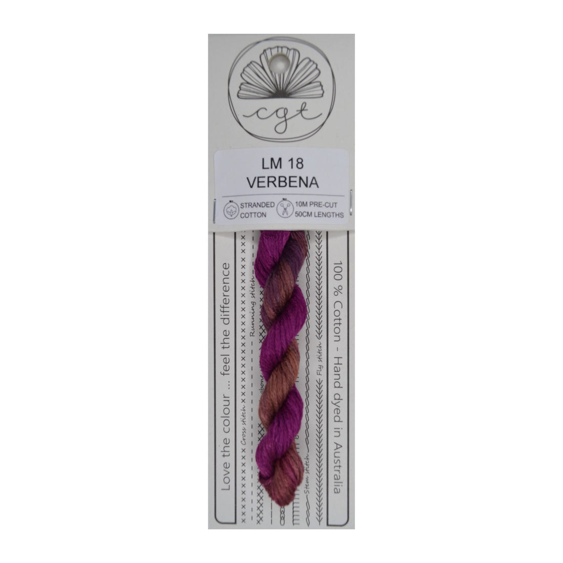 10.9 yards of Cottage Garden Threads pre-cut 6 strand, hand-dyed 100% cotton thread. Floss is colorfast, lightfast and packaged on recycled card stock. Includes storage and floss-care instructions on back of card.