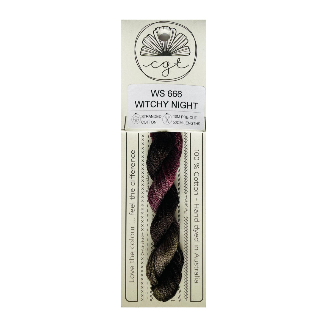 10.9 yards of Cottage Garden Threads pre-cut 6 strand, hand-dyed 100% cotton thread. Floss is colorfast, lightfast and packaged on recycled card stock. Includes storage and floss-care instructions on back of card.