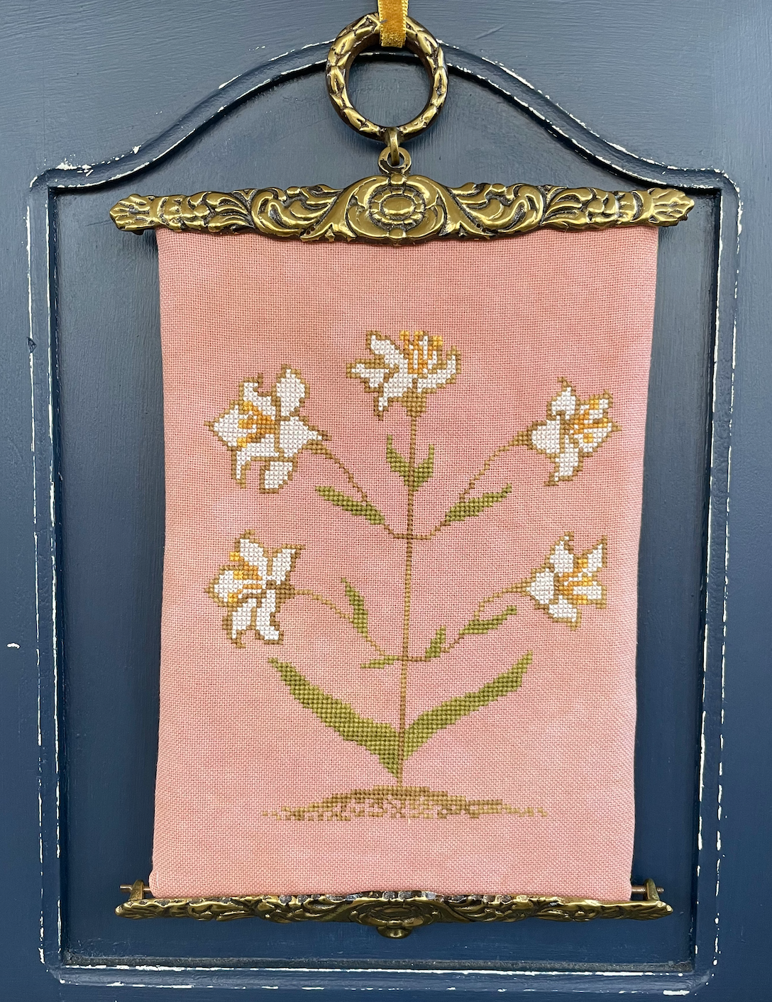 The model is stitched on 32 count Hibiscus from Fiber on a Whim