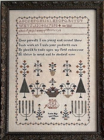 Louisa High - 1862 stitched her sampler with a verse to her parents: