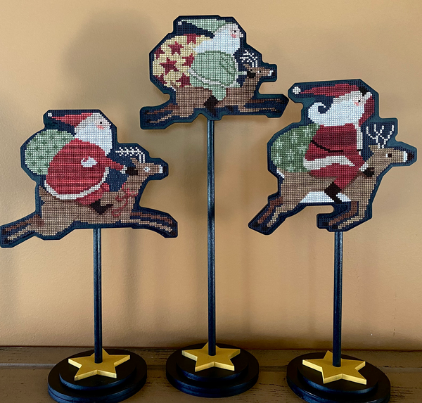 The chart includes all three Santas (charts in full color), important notes for stitching them on perforated paper and finishing instructions. Packaged in a zip-closure 9 x 12 bag.