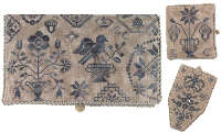 This sewing case, needlebook, and scissors sheath were inspired by the motifs of Ackworth School, a Quaker school in northern England, which was founded in 1779. The models were stitched on 32 count Maple Sugar from Lakeside Linens, Inc. using one ply of Milady's Teal from Classic Colorworks. DMC Cotton Perle #12, color 644 (to match the linen) was also used.