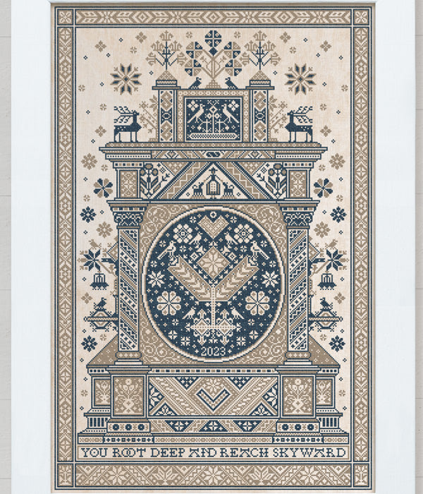 Welcome to the Modern Folk Embroidery 2023 Mystery SAL! The design, entitled Reaching Skyward is to honor nature and is a homage to the Trees of Life found on Frisian samplers.