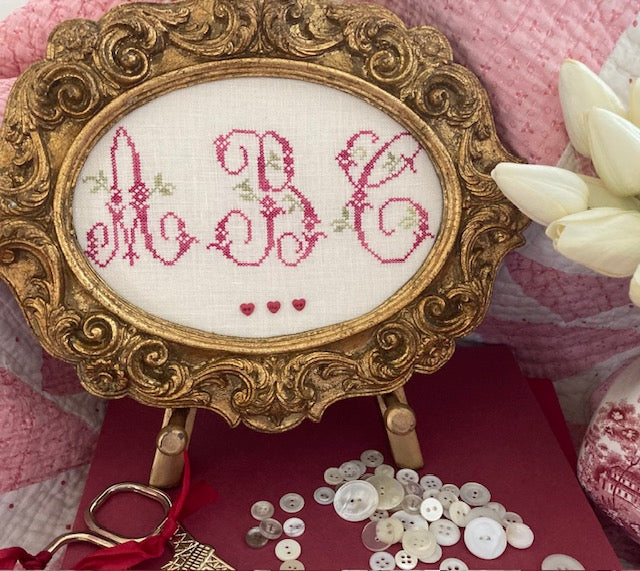 Renee's French Alphabet has been adapted from an antique sampler with beautifully formed graceful letters. The original sampler was worked in wool, and did not contain the letters : J and W, which would have been common in France at the time it was stitched. Both letters have been added to the chart, by adapting existing letters in an antique format. A single letter could be worked over one thread to create a tiny pin keep or a monogram could be stitched and finished as small pillow.
