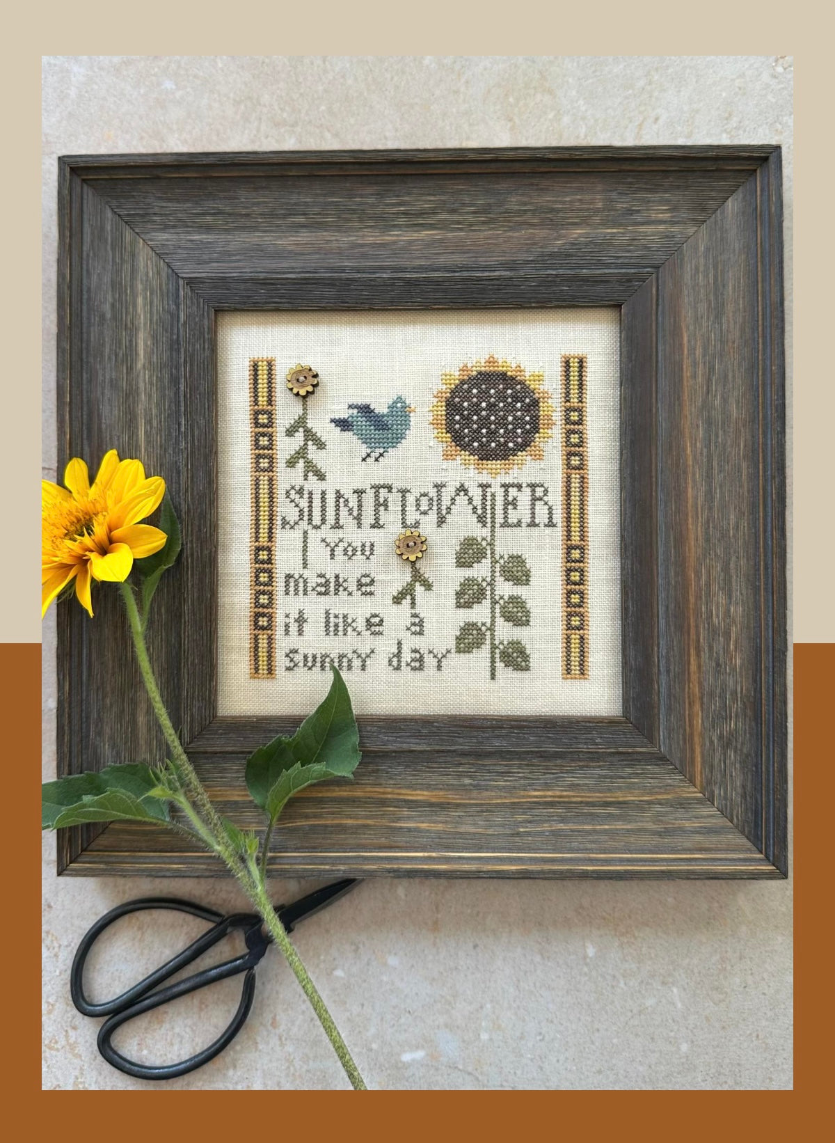 An ode to the king of the flower patch... the sunflower! Iwo wood sunflower buttons are included with each chart.