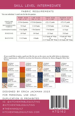 The Nina Quilt is a fat quarter friendly pattern that is perfect for your favorite fabric collection or for stashbusting. The blocks are big enough to show off your fabrics and help this quilt come together quickly. Sizes Baby Size - 38" x 51" Lap Size - 64" x 76" Twin Size - 76" x 89" Queen Size - 89" x 115"